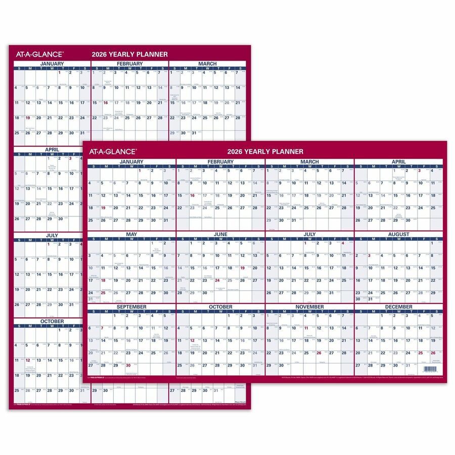 AT-A-GLANCE® 2026 Vertical Horizontal Reversible Erasable Yearly Wall Calendar, Large, 24" x 36"