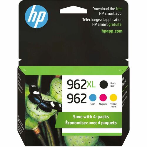 - What's in the box: 1 New Original HP 962XL black ink cartridge (3JA03AN), 1 New Original HP 962 cyan ink cartridge (3HZ96AN), 1 New Original HP 962 magenta ink cartridge (3HZ97AN), 1 New Original HP 962 yellow ink cartridge (3HZ98AN).