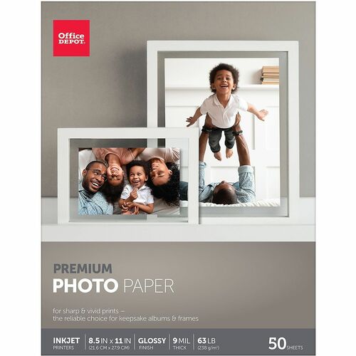 Office Depot® Brand Premium Photo Paper, Glossy, Letter Size, White, Pack Of 50 Sheets