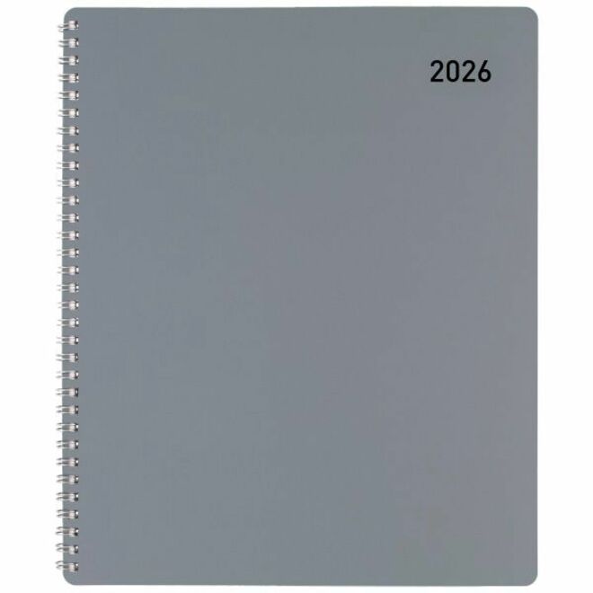Large - Regular - Weekly, Monthly - January 2026 to December - 11" x 8 1/2" Sheet Size - White Sheet - Wire Bound - Silver Polypropylene Cover - 1 Each