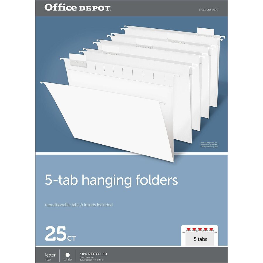 Office Depot® Brand Hanging File Folders, 1/5-Cut, Letter Size, White, Pack Of 25 Folders