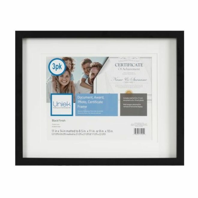 12.25" x 15.25" Frame Size - Rectangle - Horizontal, Vertical - Durable - Polystyrene, Glass - Black - 3 / Set
